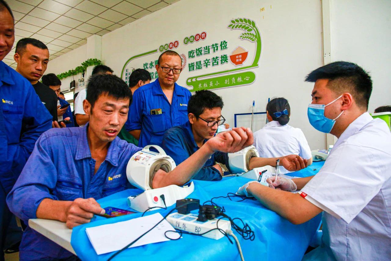 “現(xiàn)在生產(chǎn)任務(wù)忙,我們一線生產(chǎn)工人能按期接受體檢,自己也放心,非常感激公司?!痹跈z查現(xiàn)場,員工們有序排隊,檢查項目根據(jù)工種不同、接害因素不同,涉及視力、內(nèi)外科、血常規(guī)、心電圖、胸片等20余項。為保障好此次體檢順利進行,生產(chǎn)制造部及時溝通體檢相關(guān)事項和流程,管理部協(xié)調(diào)安排體檢場所,為每位員工提供愛心早餐。
